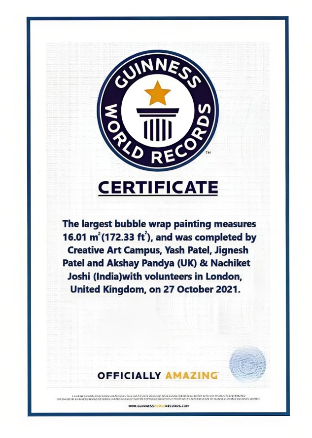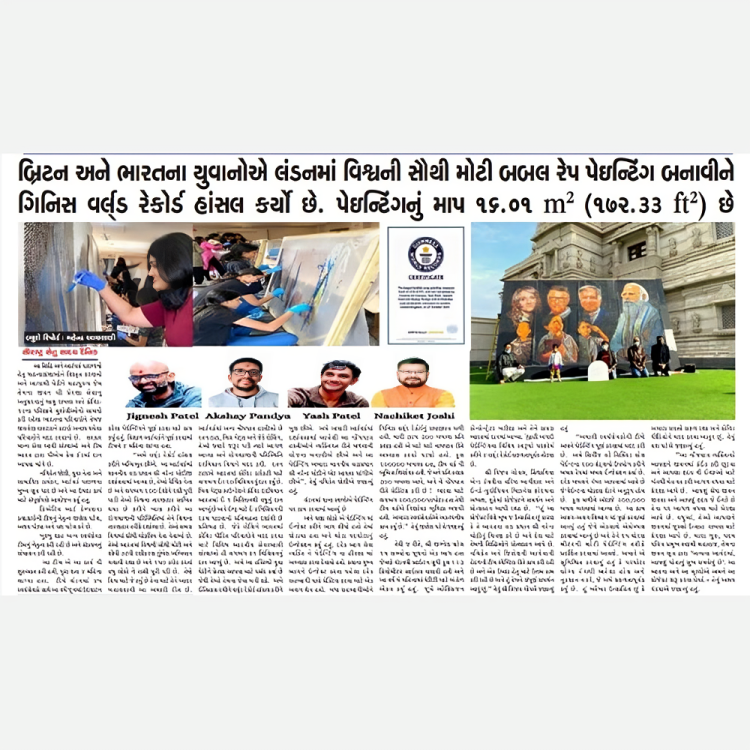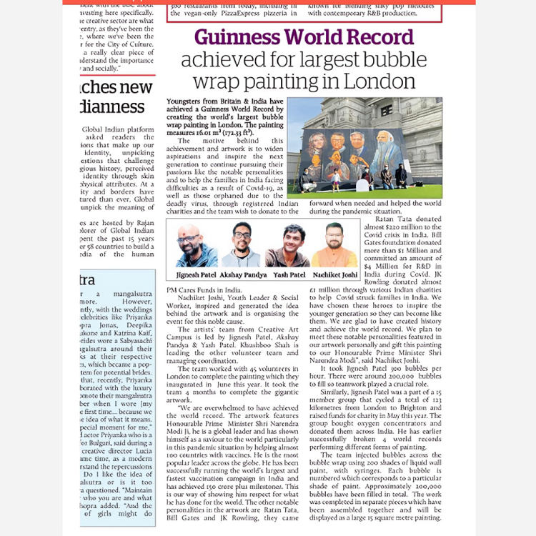 Guinness World Record achieved for the largest painting in Oct 2021 in London, a masterpiece that prominently showcased the global leadership of the Honourable Prime Minister, Shri Narendra Modi ji. Renowned for his role as a saviour during the pandemic, he generously assisted nearly 100 countries by providing them with vaccines. Shri Narendra Modi ji, celebrated as the most esteemed leader worldwide, was at the forefront of the world’s largest and quickest vaccination campaign in India, achieving a remarkable milestone of over 1.5 billion vaccinations. This monumental artwork served as a gesture of deep respect, acknowledging his profound contributions to the well-being of the world.