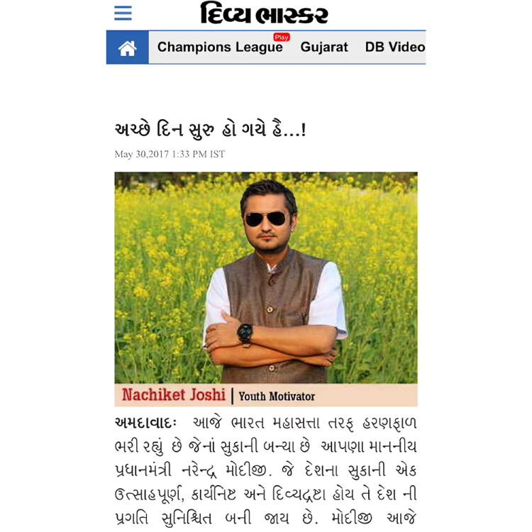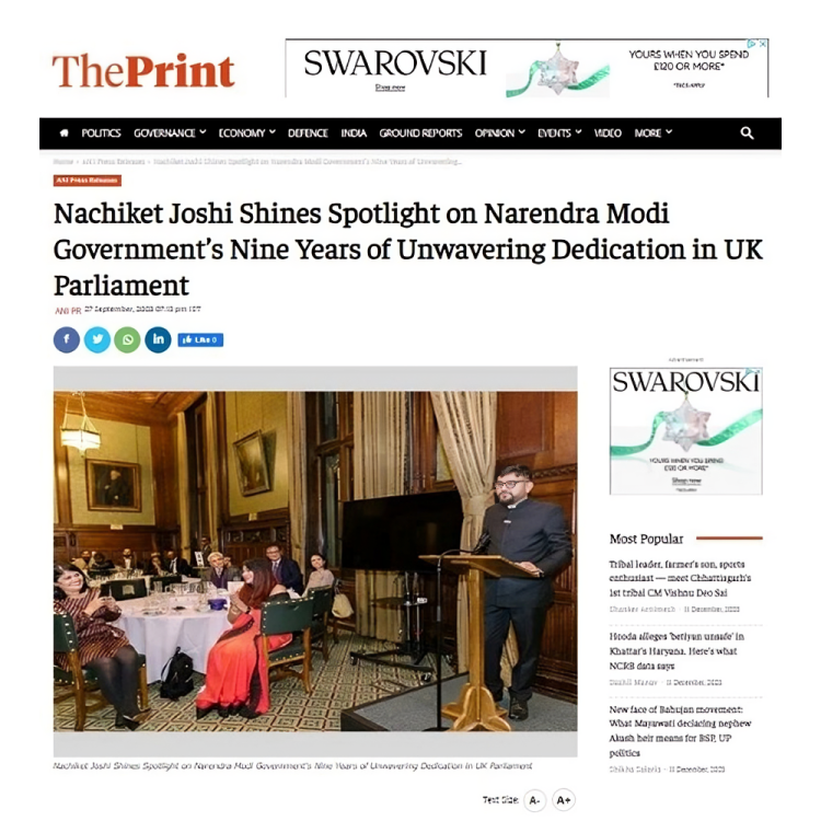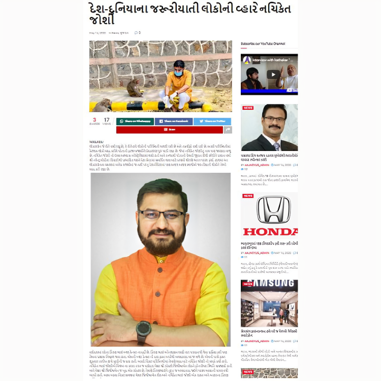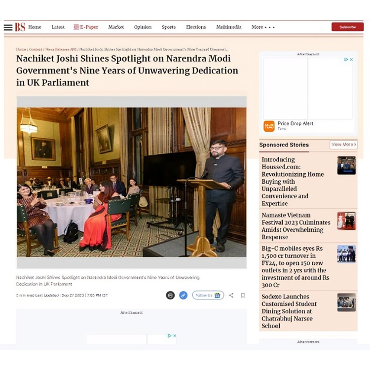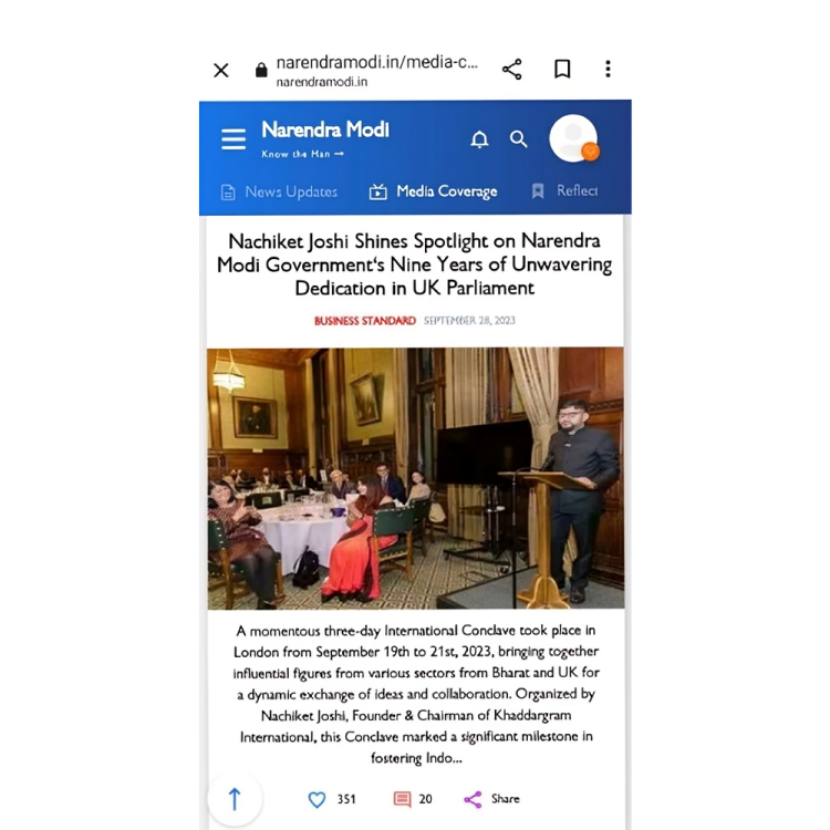 His recent newspaper coverage, spotlighting the nine years of steadfast dedication by the government under the leadership of Prime Minister Narendra Modi Ji, gained recognition on the official website of the esteemed Prime Minister. This acknowledgment underscores the significance and impact of Mr. Nachiket Joshi’s insights and contributions in bringing attention to the achievements and commitment of the government under Prime Minister Narendra Modi’s leadership.