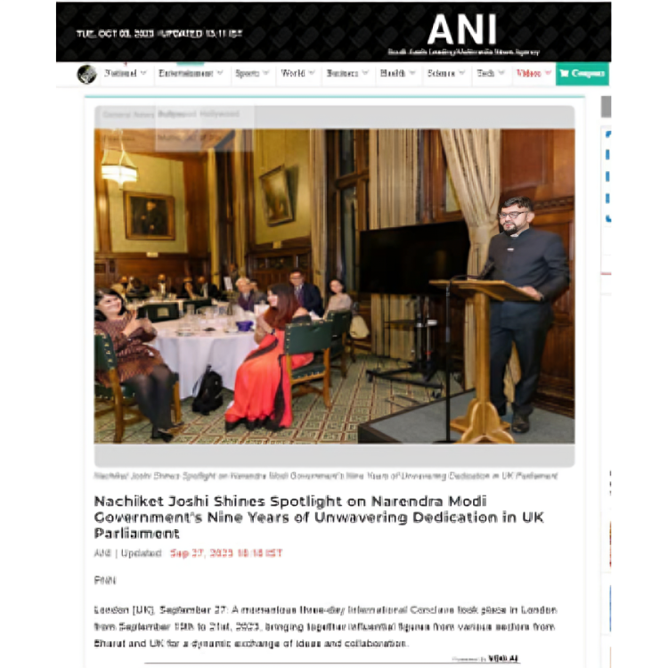 International Conclave 2023 in London, UK to share the achievements of Indian Prime Minister Shri Narendra Modi and his 9 years of unwavering dedication to the nation’s growth from 19th Sept to 21st Sept 2023. The conclave enabled exchange of dialogue about Britain’s growth and the contribution of the Indian diaspora. It brought together the most influential figures from diverse sectors including business, government, politics, academia, social entrepreneurship, research, social work and others prominent fields. We engaged in inspiring discussions around United Nations Sustainable Development Goals (SDG’s) and highlight India’s commitment to Environmental, Social, and Governance (ESG) principles.